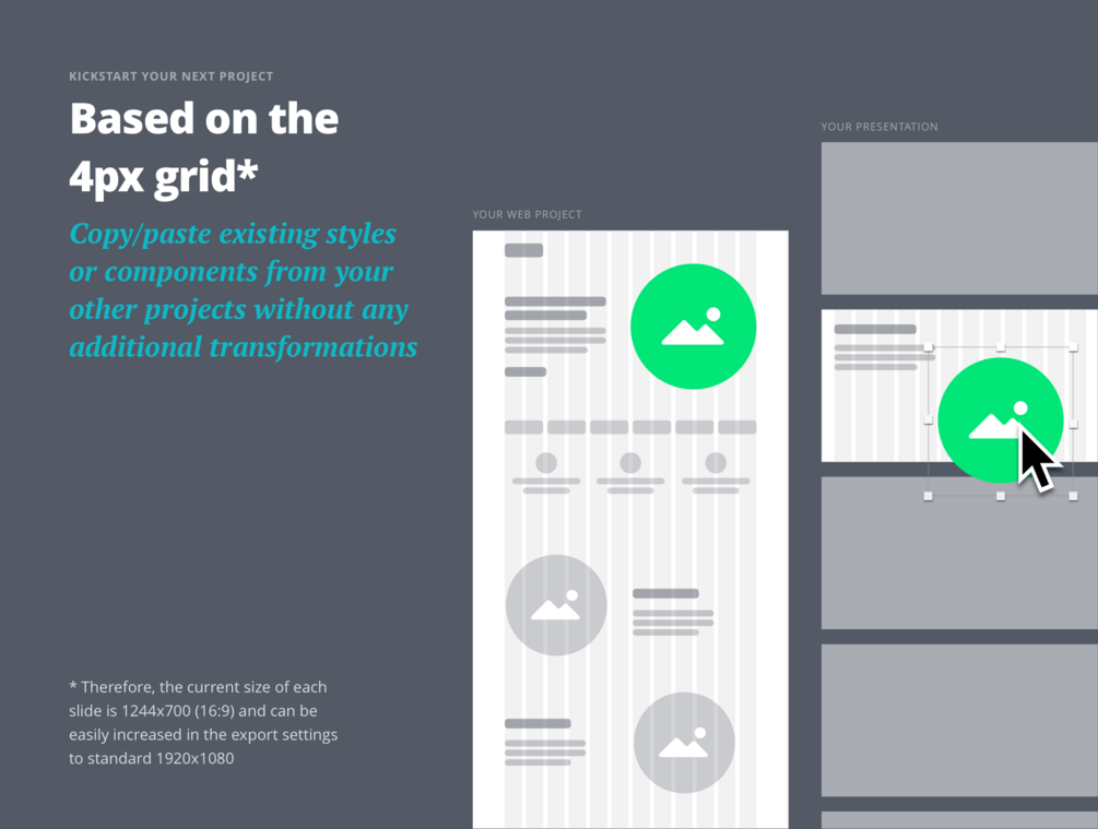 You can design pitch deck presentation, marketing kit, commercial proposal, business plan, or annual report with ease using existing styles and components from your other sketch projects without any additional transformations. It's also great for vertical presentations like portfolio (e.g. Behance) or product overview in e-commerce or marketplaces.